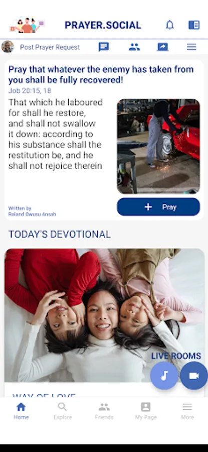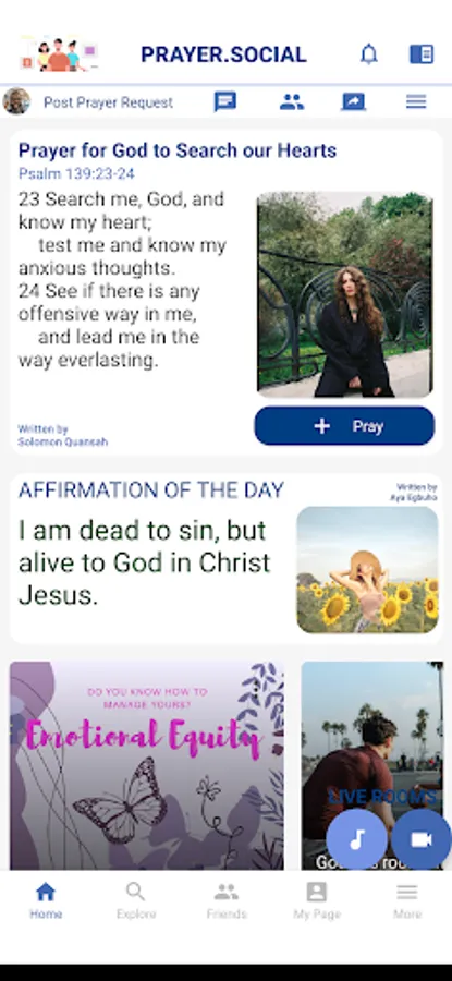 PRAYER.SOCIAL’s goal is to connect people around the world in heartfelt and fervent prayer to the Father. Scripture describes prayer as sweet incense that rises to the Father. This app is a digital imagining of unceasing prayer around the world. On our platform, members are provided with familiar tools so they are right at home even if it is the first time they are joining.