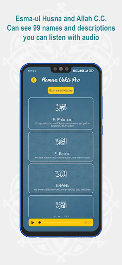 - With the Holy Quran section, you will be able to listen to the Quran in different styles of 12 hafiz and you can read 106 different dishes and the meaning of the Quran in different languages in the application.