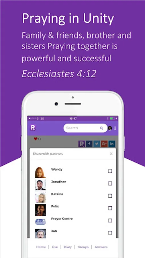 Invite contacts, collaborate in groups and grow your prayer partner circles.