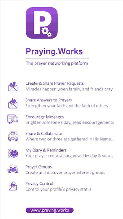 Praying.Works is a platform designed to help individuals, families, ministries and churches, pray. This is the best prayer for today & pray list app you can use to build faith and showcase your love.