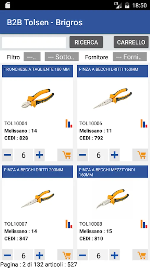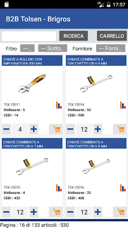 This Application, allows to detect items in stock at the CE.DI. Brigros and ordering restocking for the Brigros store, the app interfaces with the company's ERP software and exchanges information, creating a photographic catalog.