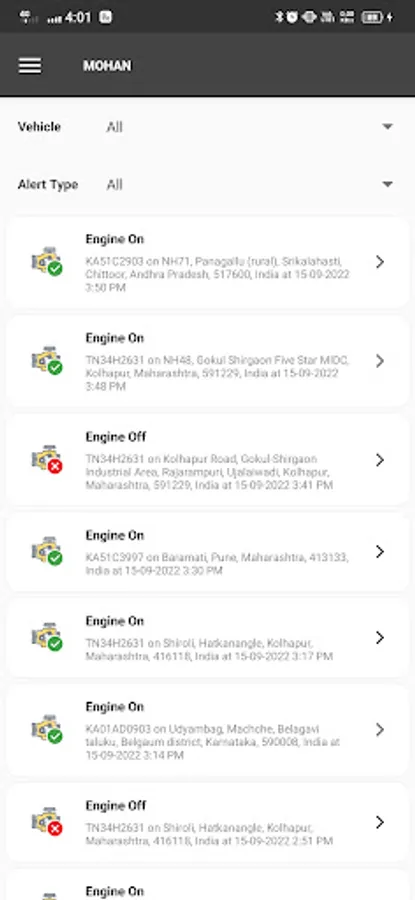 PRD Rigs India is an application used to track vehicle and specific vehicle details. Vehicle details like Distance traveled, Speed, Fuel, RPM, Engine, Vehicle Documentation. This Application Notifies the user about the over speed, fuel theft, refueling, idle time, etc. This Application can be used for all types of vehicle like Bike, Car, Lorry, Rig, etc. The data's can be filtered based on dates.