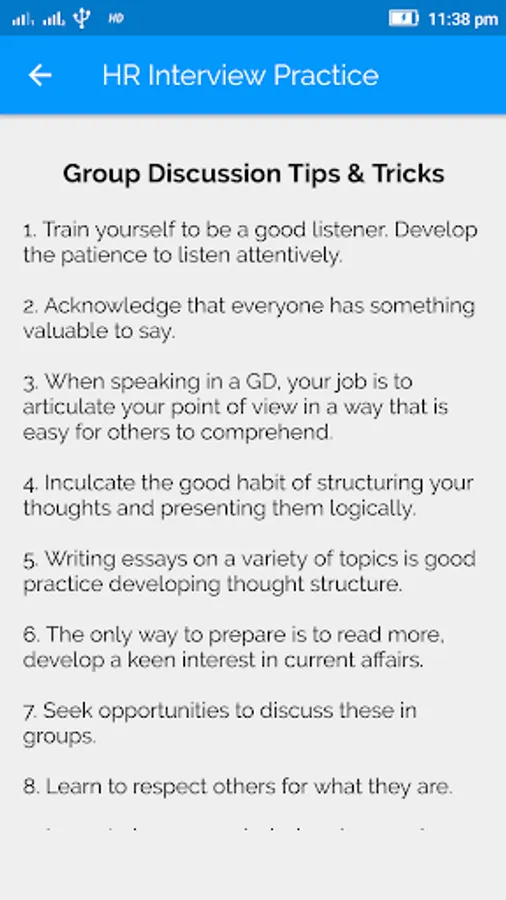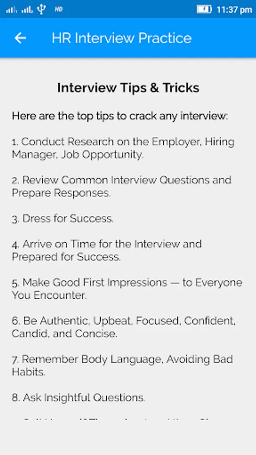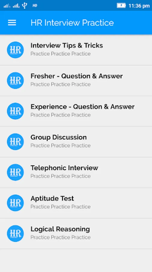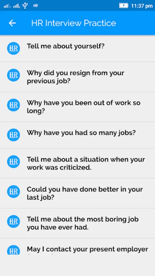 Introducing HR Interview Practice app with most discussed HR round questions and interview tips. This application is one stop destination for all your HR Interview questions.