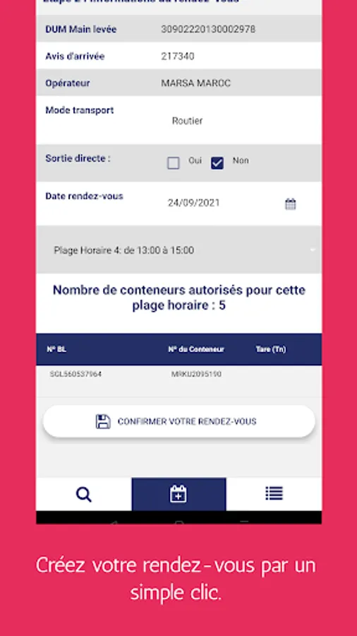 Electronic appointment making via PortNet for the removal of full containers for import, at the port of Casablanca.