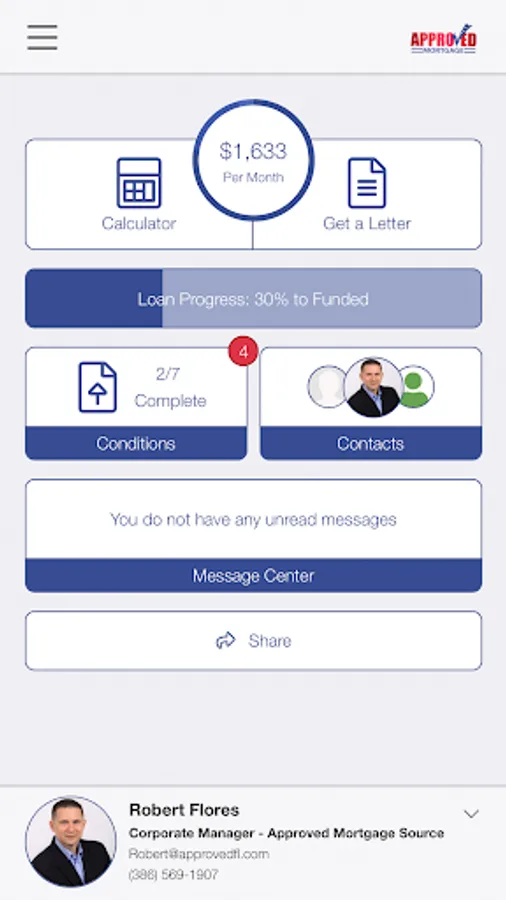 - Contact your Loan Officer or Realtor quickly and easily