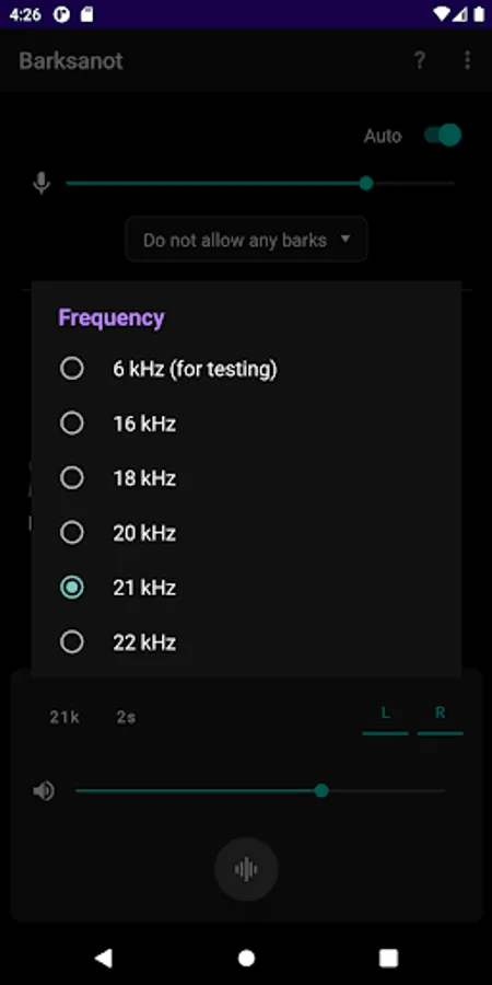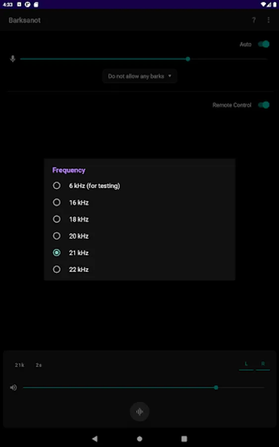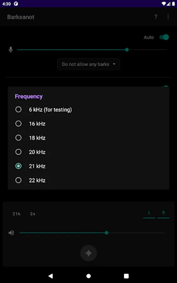 Barksanot deters dogs from barking by playing high frequency beeps outside your hearing range, but which dogs can hear clearly. You can trigger Barksanot manually when you hear barking, or set it to respond automatically using the microphone.