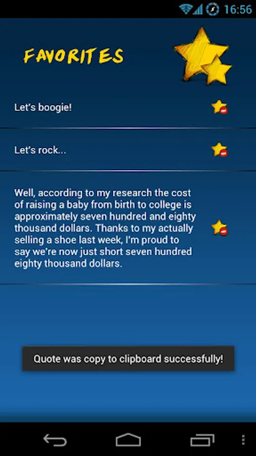 ✔ Long press on quote at favorites screen will save it on your clipboard.