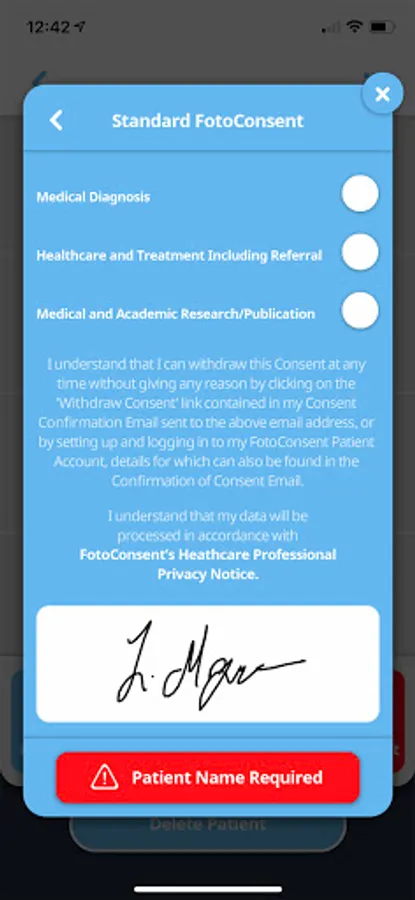Patient consent is awarded in-app or online. Compliance and auditing is taken care of and our VAULT system is your legal safety net.