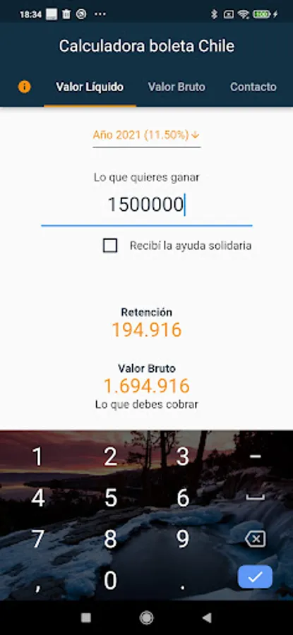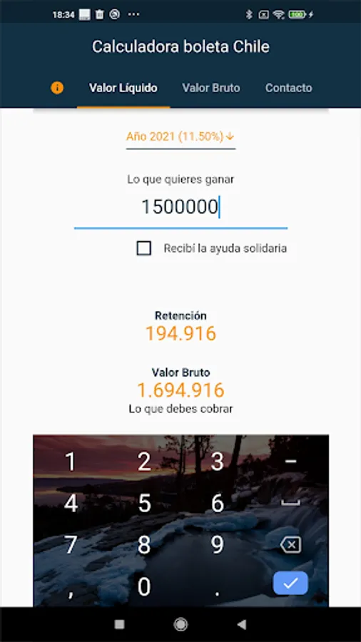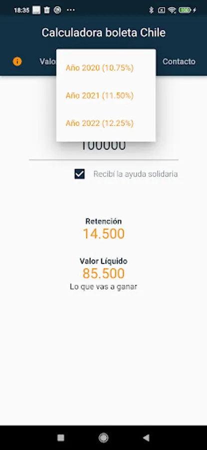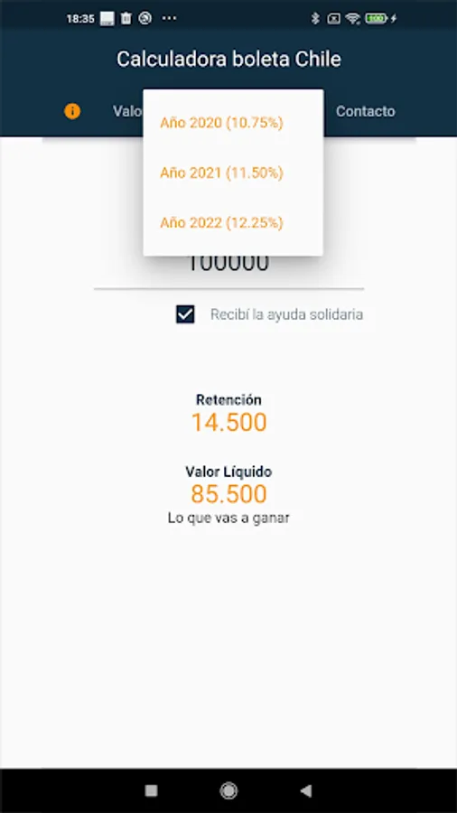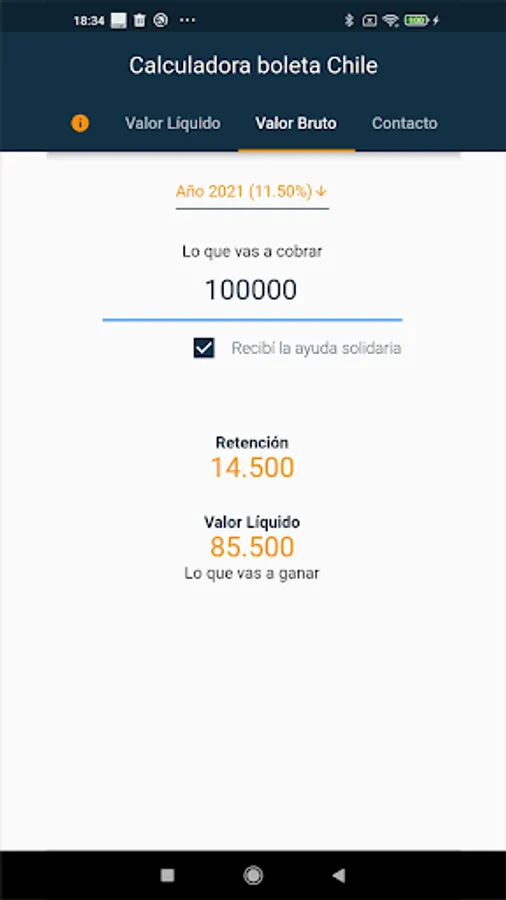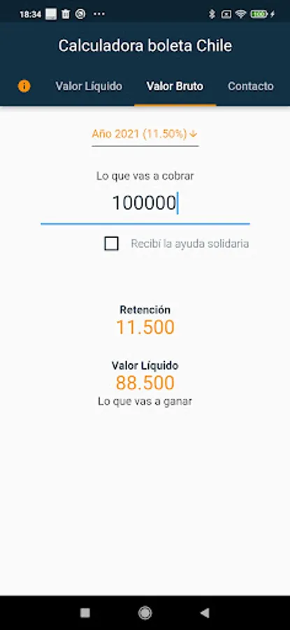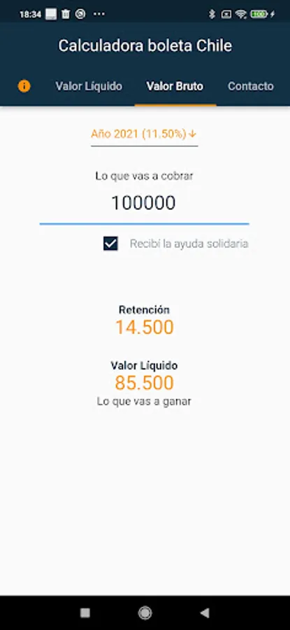 Calculate the gross or net value of a bill. Insert only one value, select as you are interested: Year, with or without solidarity aid and obtain the withholding and the output value (liquid or gross according to your choice).