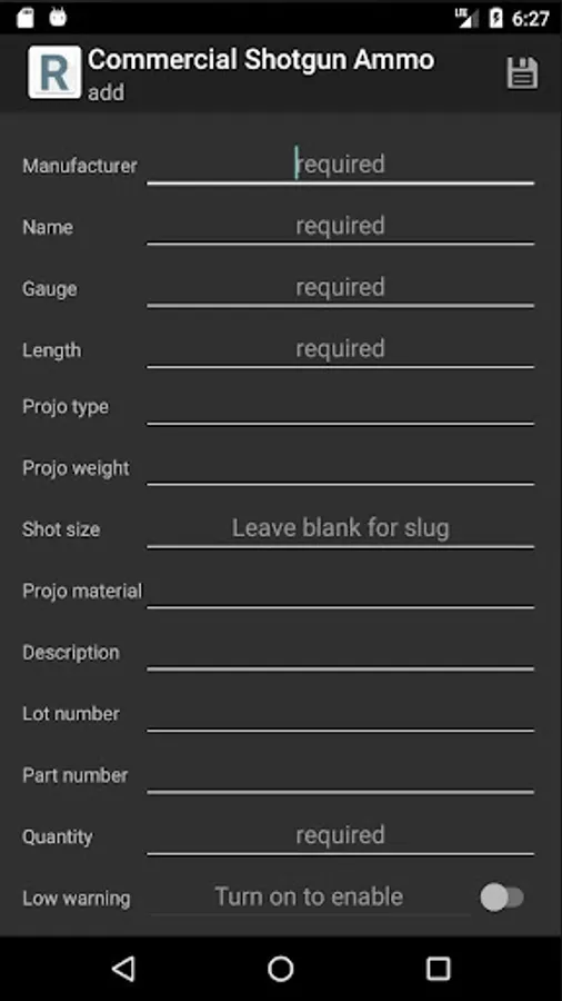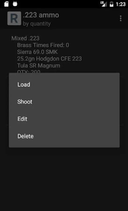 Easily input, manage, and retrieve information on Primers, Powder, Brass, Bullets, handloads, commercial ammo, Rimfire, and now Shotgun (both commercial and handloads). Enter details such as lot number, quantity, bullets, times fired (brass), primer size/type, wads, hulls, shot, slugs, and more! Quickly and easily sort components by various fields to make viewing your inventory simple. Define your load data for your Ammo using components you have in stock, and the app automatically removes the proper components from your inventory when you increase the number of loaded rounds of a particular Ammo. After you finish reloading, simply click "Load" on one of your defined Ammo to increase your inventory of that Ammo.