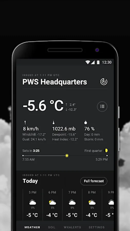 Monitor your preferred weather station with Sensory Summary details, measurement timestamp with high / lows, average daily wind speed and gust, accumulated precipitation for the hour, day, month and year