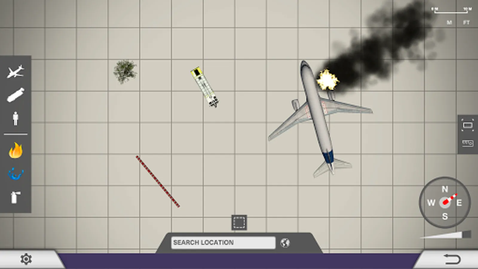 -Place aircraft, vehicles, and hazards and explore airport firefighting scenarios