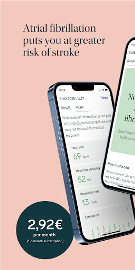 Gain information about your heart health with just one minute with your phone - starting at 2,92€/month (check local currency)