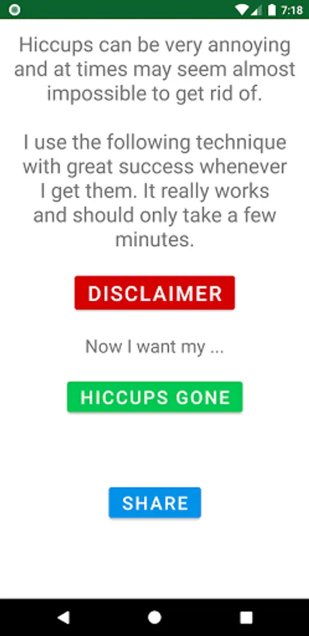 I use the following technique with great success whenever I get hiccups. It really works and they'll be gone in a few minutes. The cure is based on a simple breathing exercise and this app will teach it to you with step by step instructions.