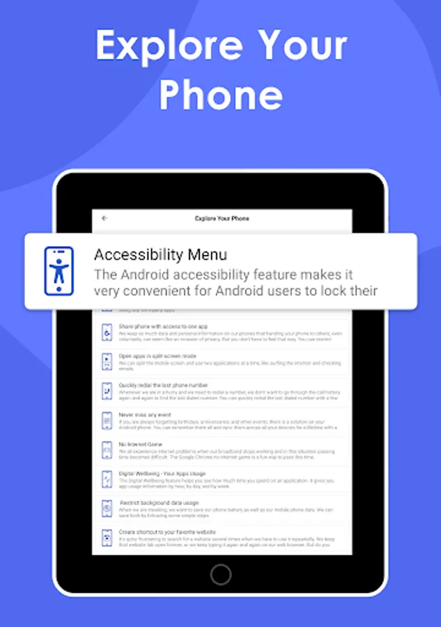Get the Mobile tricks and tips for android secret codes that will help you to increase your knowledge. Find the Latest technology Tricks and Tips for your android mobile. You will also be able to learn a lot of things about your android phone secret code. All the things are explained step by step. Stay connected with our Mobile guide app to get more secret android tips. We continuously add new tips for android and mobile tricks. Users are notified via a new update.