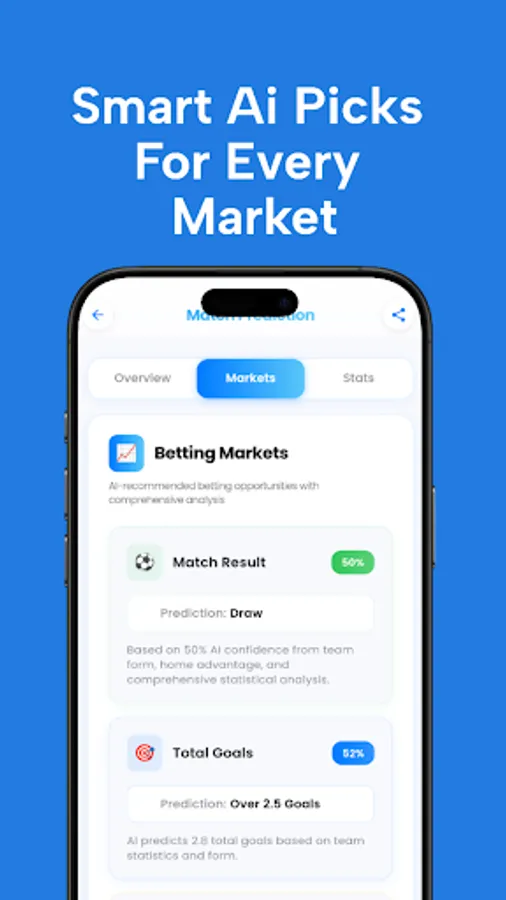 Predictify: Ai Soccer Prediction also brings you enriched team profiles and player breakdowns, making it easier than ever to understand the story behind each outcome. Dive into possession maps, finishing efficiency, defensive compactness, and current trends that influence match results. With simplified visual insights and expert-level AI reasoning, you get the perfect blend of data and intuition—ideal for casual fans and hardcore analysts alike.