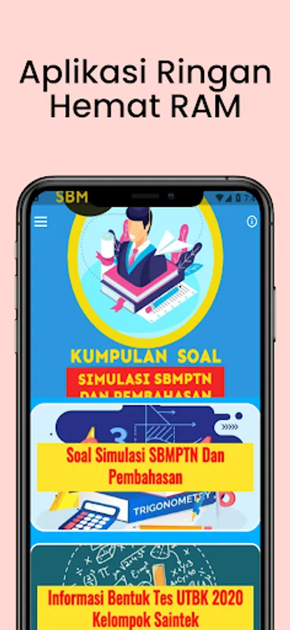 Applications about Try Out Problem Predictions Complete Simulation of CBT PBT SBMPTN Discussion The latest answers can be obtained and installed on each of your Android phones, the SBMPTN question bank and special discussions for all of you everywhere. Sometimes we have difficulty getting the most practical exercises and discussions? The difficulty to get a leak about the 2019 SBMPTN at this time? The following is an application from our questions and answers without SBMPTN and discussion that becomes an important reference for all of you. Through the full simulation application, besides that, it can also be easily used through each of your Android devices.