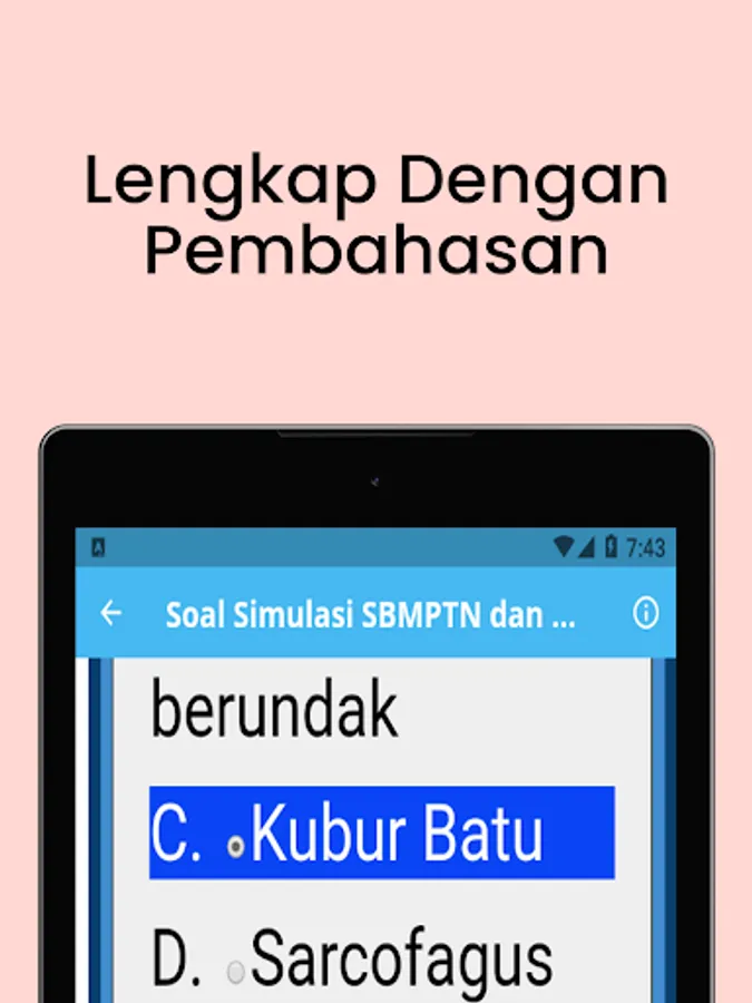 In the future, we will always update the SBMPTN Learning Materials for All Subjects. We hope all friends always install the application so that we always get support from all in developing this application. Hopefully it will be useful for all and congratulations on using the SBMPTN Simulation Problem application. Complete Discussion of the Answer Key and Discussion from your Android device. Thank you very much.