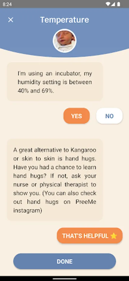 How is my baby doing today? Every NICU parent wants a meaningful answer to this question. Having a preemie is stressful. There is never enough time in the NICU for medical teams to communicate all the complex variables they are analyzing to take care of your baby. This app is a partner to parents and medical care teams. PreeMe+You utilizes a proprietary color system created and validated by doctors to track and communicate levels of NICU care and progress in five body system areas (breathing, eating, sleeping, temperature, and growth). This harmonizes communication between parents and rotating medical teams, preventing “lost in translation” and empowering parents with hands-on knowledge in real-time. It’s all the big and little things your medical team wants you to know about your baby’s personalized care if they had all the time in the world.