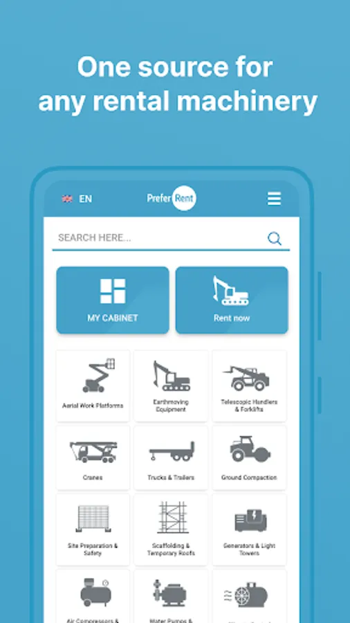 Online rental marketplace lets users search, select, and rent construction machinery and tools from a wide range of rental companies. Full cycle online equipment rental platform eliminates phone calls and visits to rental companies as all stages automated and transactions are signed digitally. Ratings of rental companies and their rental equipment based on user’s experience. Transparency of all rental transactions.