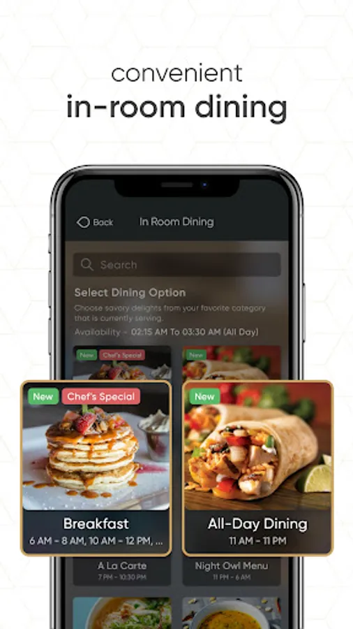 Enjoy digital in room dining services & the luxury of breaking bread in your room. Bringing a digital menu & ordering close at hand with Oneguest app.