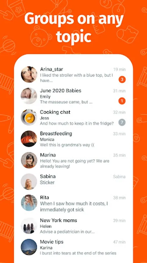 - Groups and chats for communication on any topic - from children's and family health, to hobbies and business