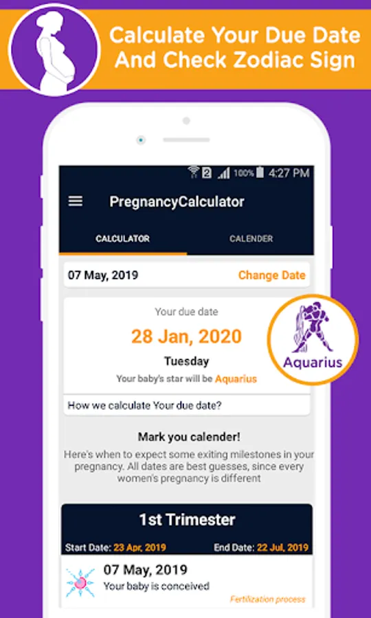 This pregnancy calculator by conception date app will help you if couple wants to have a perfect pregnancy and a healthy baby, they must take care of pregnancy planning as well. A complete pregnancy delivery calculator app for specially, it is important for a woman to be prepared herself for pregnancy, both mentally and physically. Pregnancy calculator and calendar is a complete and easy application that lets you know when you are pregnant, without missing dates or even.