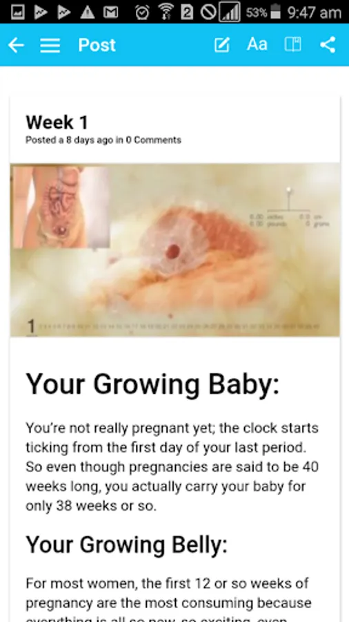 Want to see beautiful, interactive images for every week of pregnancy? Join more than 17 million users who already use this Pregnancy tracker App to follow their pregnancy week by week.