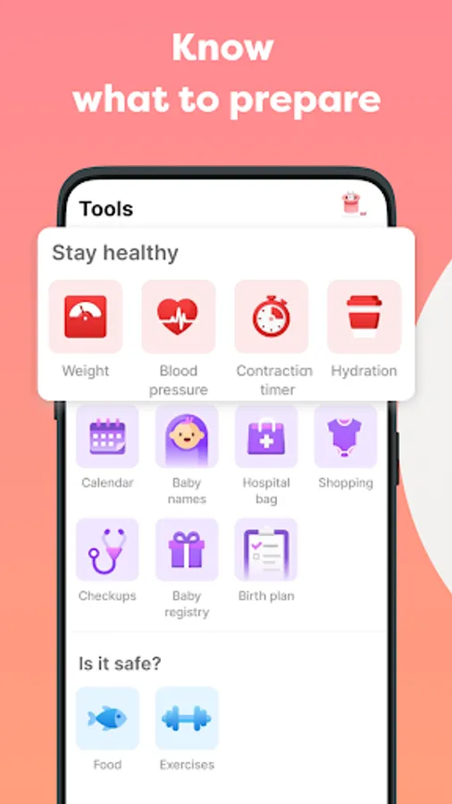 Weβll also help you with everyday tasks and postnatal preparation. You can use our lists to track what you need to buy or what to put in your hospital bag on the day of your delivery. Also, look at our safety guide to check what food and exercise you should avoid.