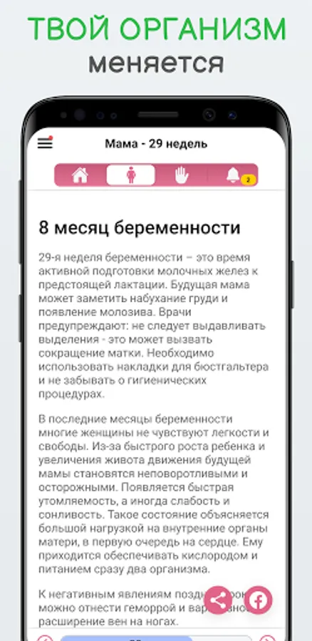 Pregnancy by week is a very convenient and useful application for expectant mothers. The pregnancy calendar will help you find out how your baby is developing during pregnancy. In the appendix, the state of the mother is painted weekly and what you should pay attention to at this time. In the pregnancy calendar, all information is broken down by week.