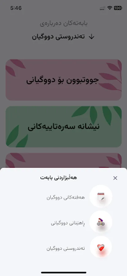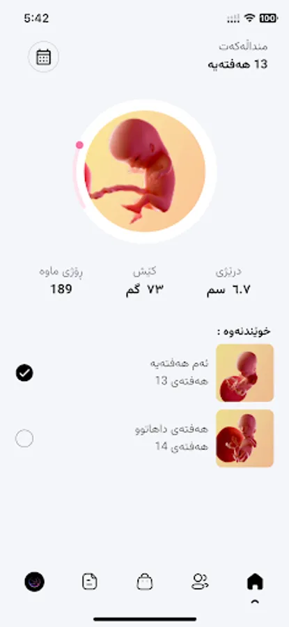 یاریدەدەرت لە نۆ مانگی دووگیانیت بە دابینکردنی زانیاری پێویست لەسەر هەفتەکانی دووگیانی، خۆراک و وەرزش، لەگەڵ بەشێکی تایبەت بە میدیا