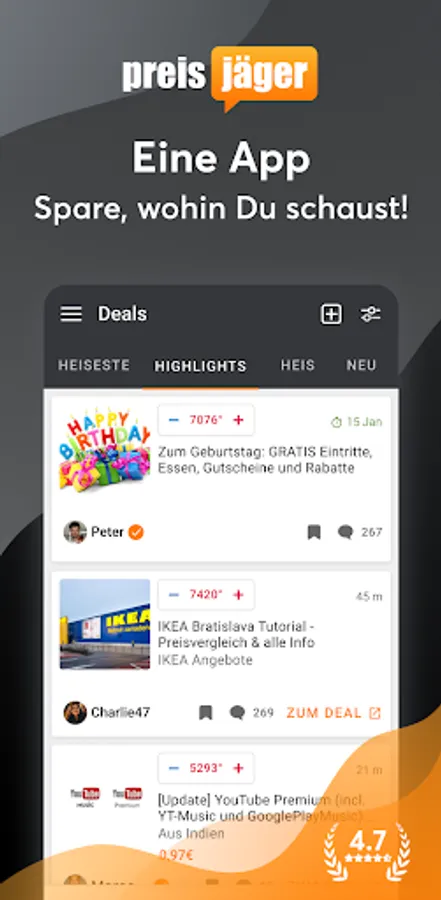 The official price hunter app is your free access to deals, vouchers, freebies and savings directly on your mobile device. Become a part of soon 120,000 members who share good offers, sales, discounts and tips that you often won't find elsewhere.