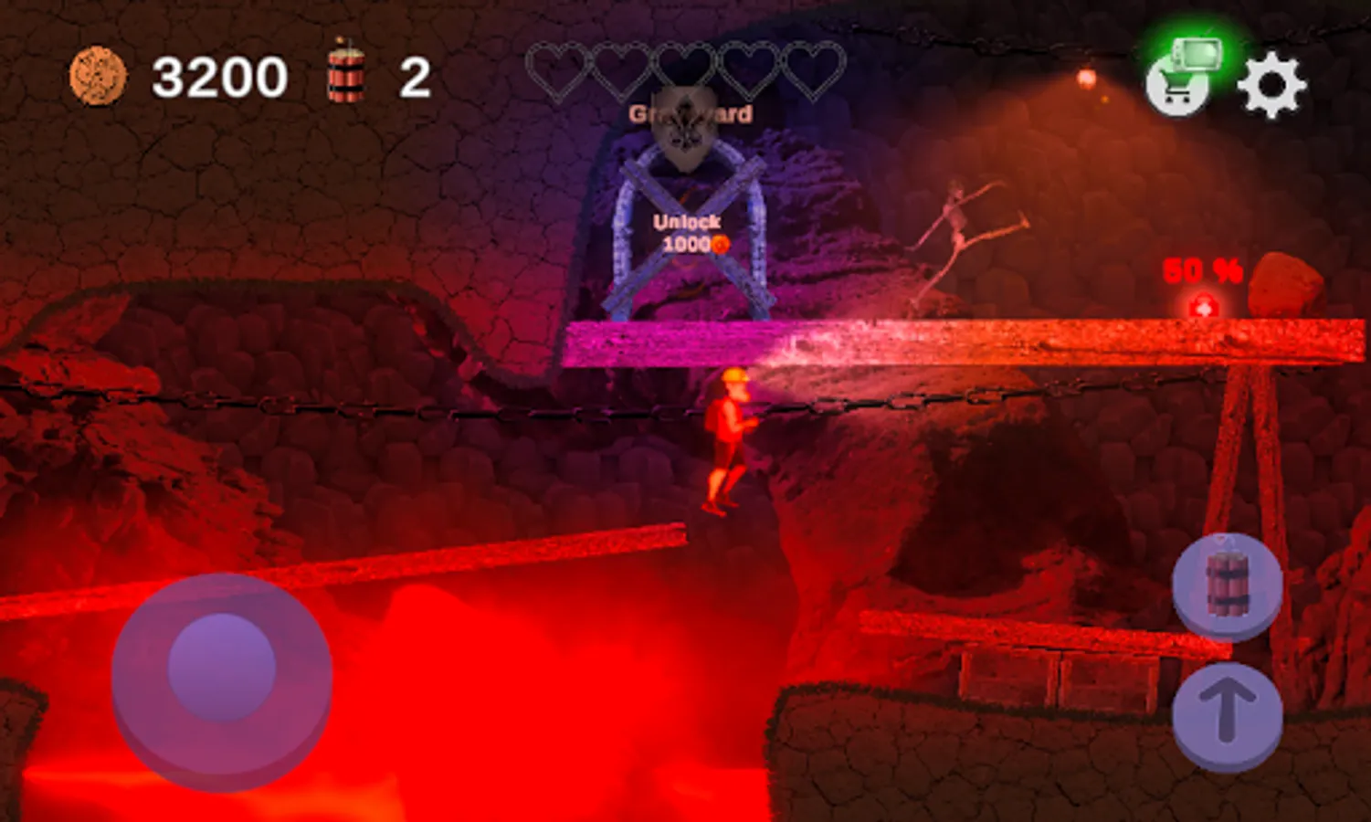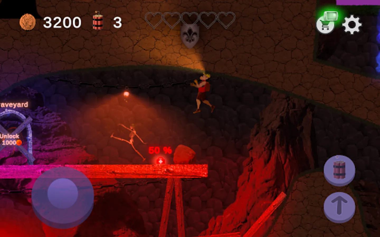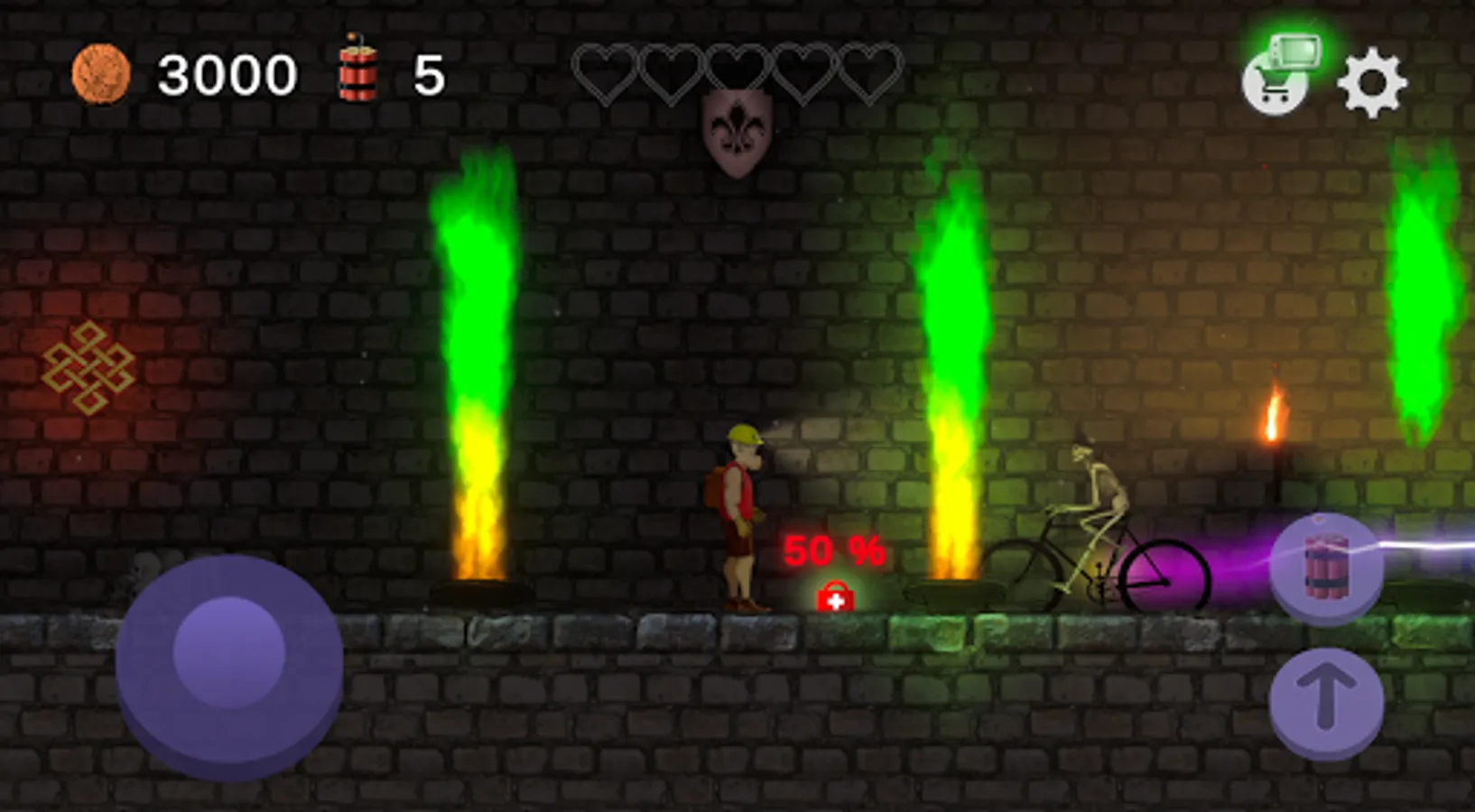 Dead skeleton zombies, spiders, skulls and ghosts roam the misty woods and dungeons. Grab your dynamite packs and destroy or avoid the unholy undead monsters blocking your way back home.