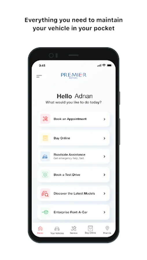 Your car profile is where you can view your car information, warranty, and service details at a glance. Just log in to the app using a mobile number registered with Premier Motors and your car details will be fetched automatically.