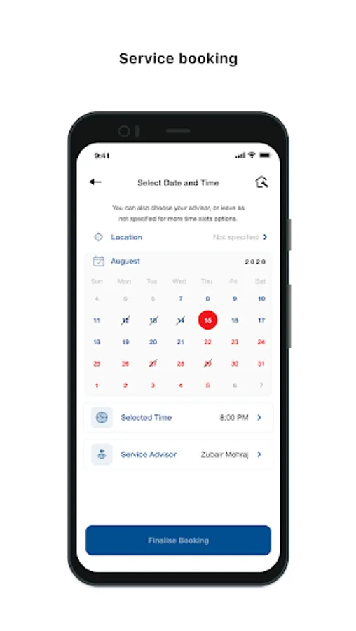 Easily book a service by selecting a suitable date, time, and preferred location.