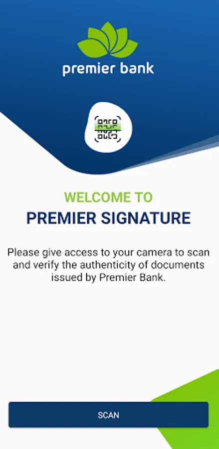 Premier Signature is a document verification application that enables you to verify the authenticity of the documents issued by Premier Bank, anywhere, anytime. The scan results are summarized into the key value of the verifiable information of the document.