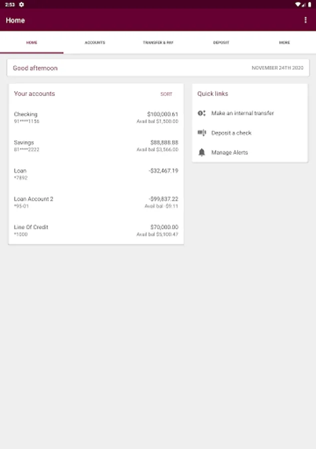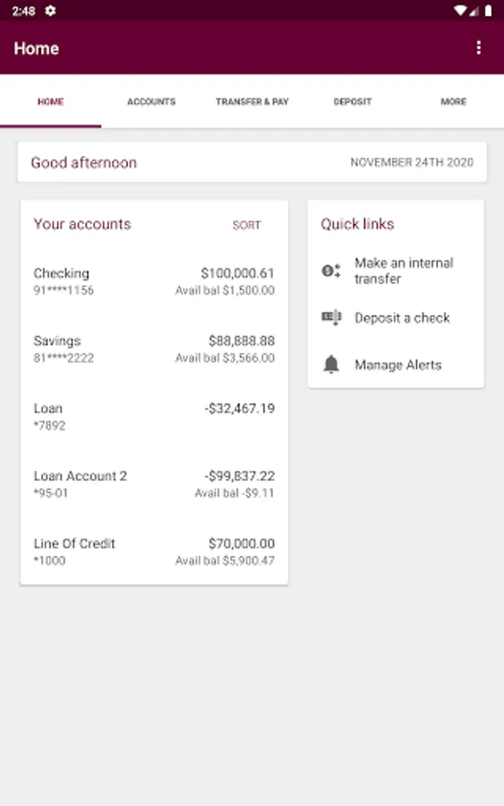 Manage your money anytime, anywhere – from your mobile device. You can view your balances, check your transaction history, and transfer money between your accounts.