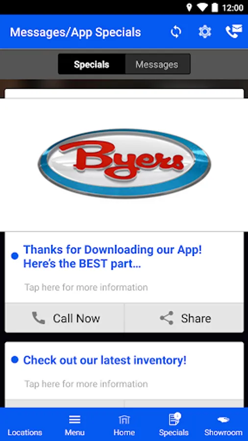 We are proud to bring your very own Byers Auto MLink app! Here are just a few features the app includes: