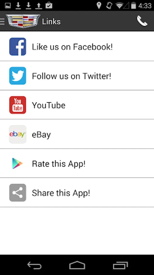 - Call any of our departments or Cadillac roadside assistance with the touch of a button