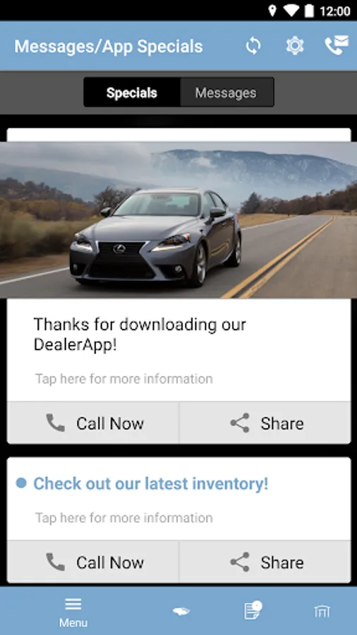 In addition, all the standard MLink App features are also here like: Call and email each department, get directions, view operating hours, get quotes on vehicles, order parts, etc etc…
