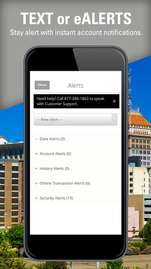 • Set up text or email alerts to warn you of account status changes, help you avoid fees and be alerted to suspicious account activity.