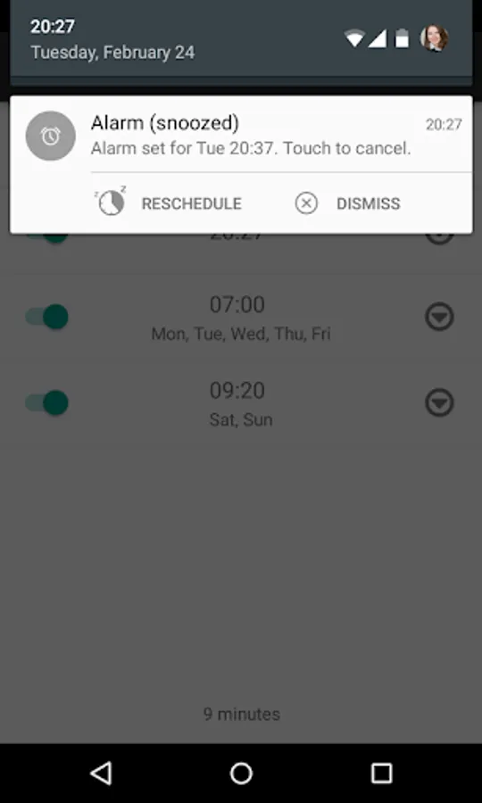 • Snooze for some time with one click or to a snooze to selected time with out time picker