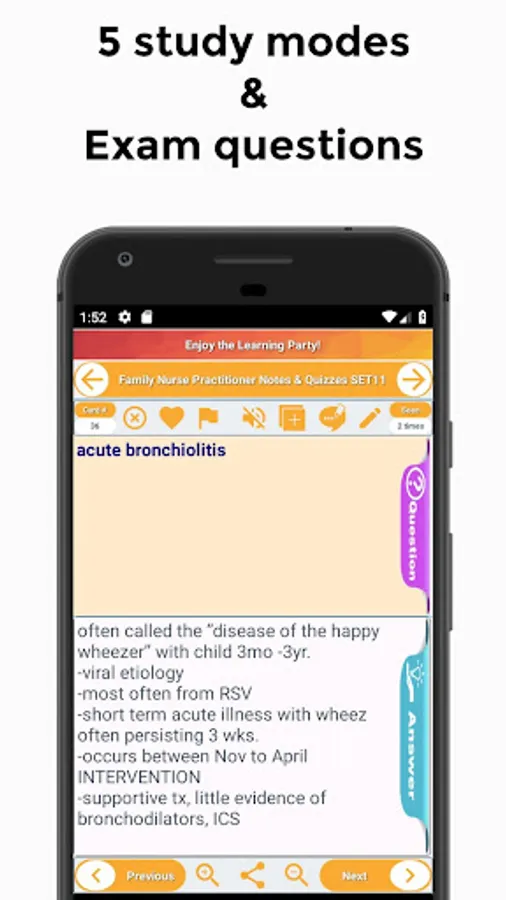 This app is a combination of sets, containing practice questions, study cards, terms & concepts for self learning & exam preparation on the topic of Family Nurse.