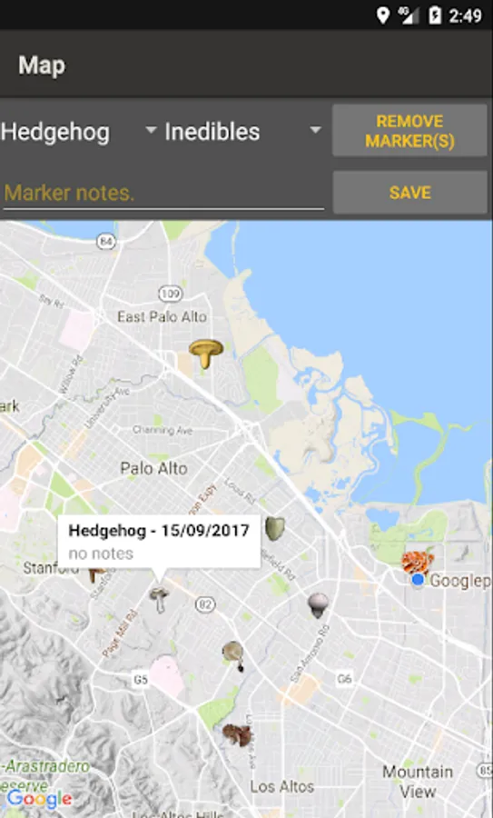 Place markers on the map to track mushrooms that you have found. Next time you are in the area, head back to the same area and find what you are looking for.