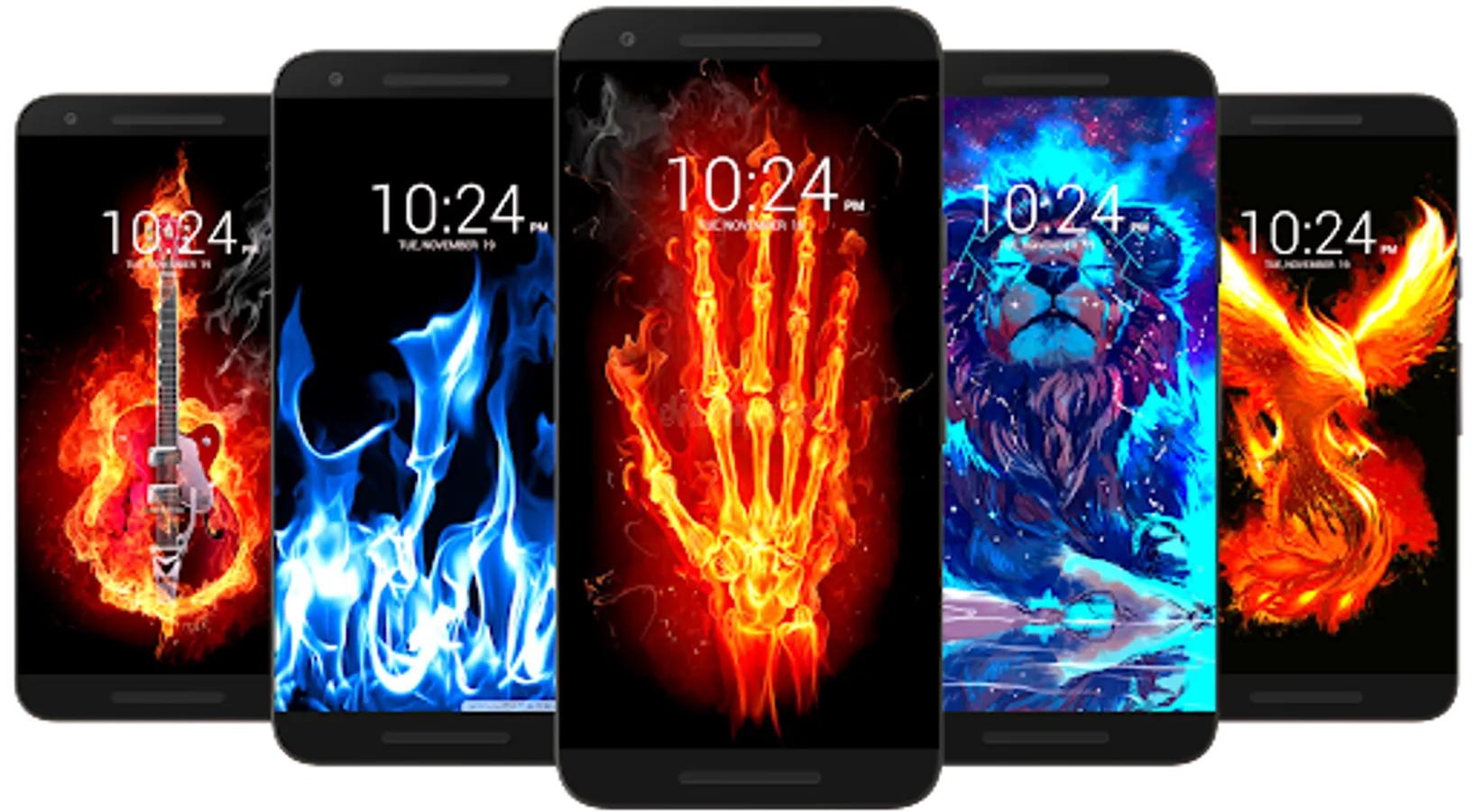 Sizes: 2160x3840, 1440x2560, 1080x1920, 720x1280, 540x960, 480x800 and other Android sizes. The app provides Fire wallpaper free for the screens of all phones and tablets.