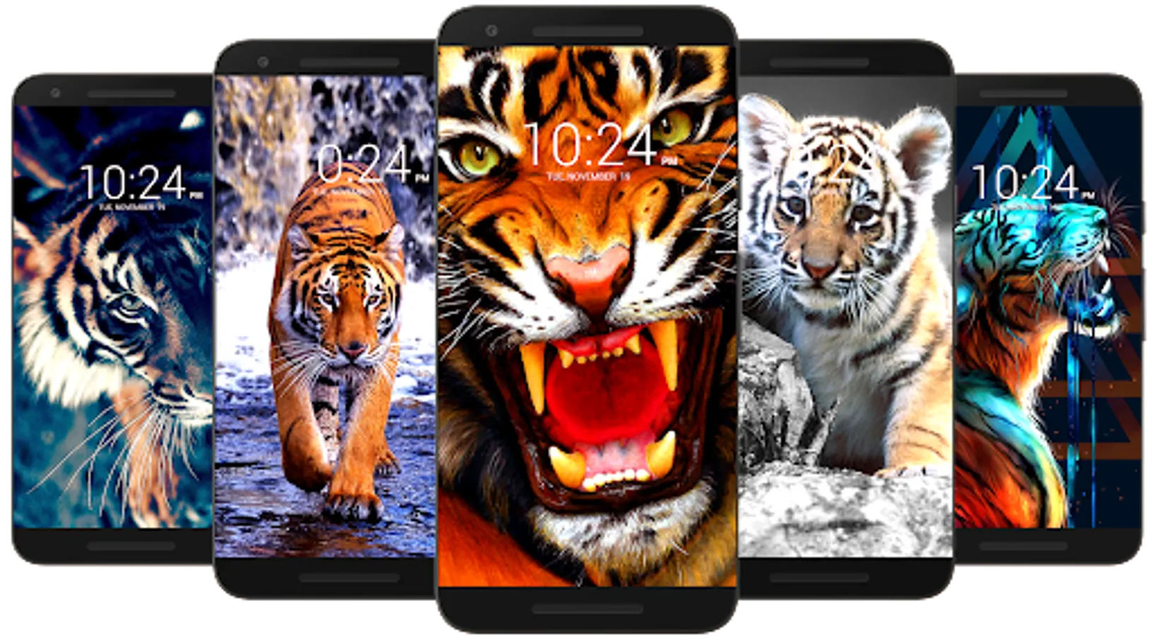 Sizes: 2160x3840, 1440x2560, 1080x1920(recommended), 720x1280, 540x960, 480x800 and other Android sizes. The app provides free Tiger wallpaper HD for the screens of all the devices and models.