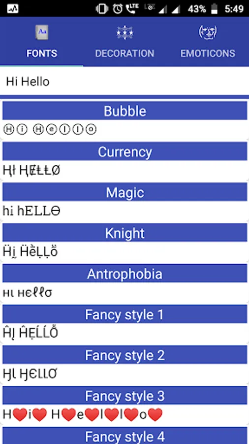 Font Style is made with Objective to give a Fancy Look for your text message. This App has various Fancy fonts with instant preview so you can take a look how exactly font will look. Users can decorate their text message and instant can copy and paste on social media plateform.