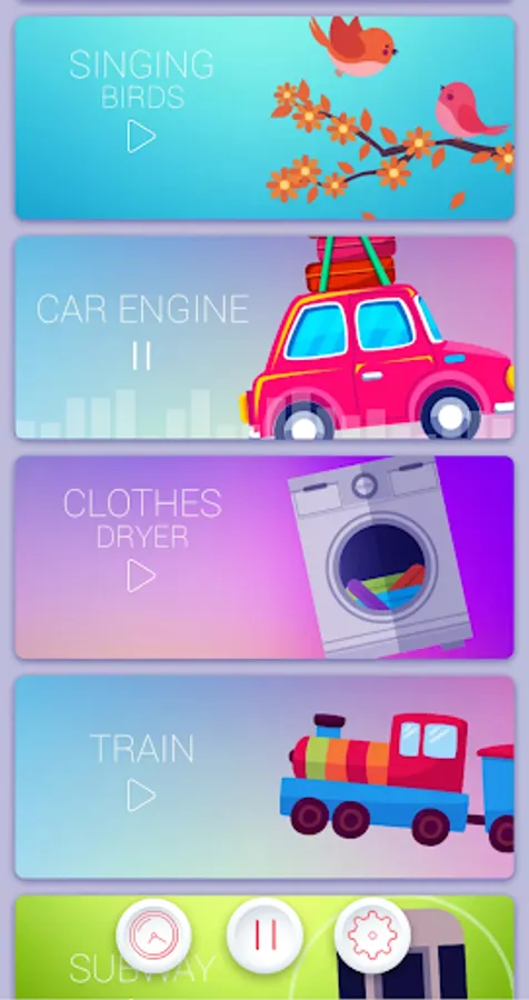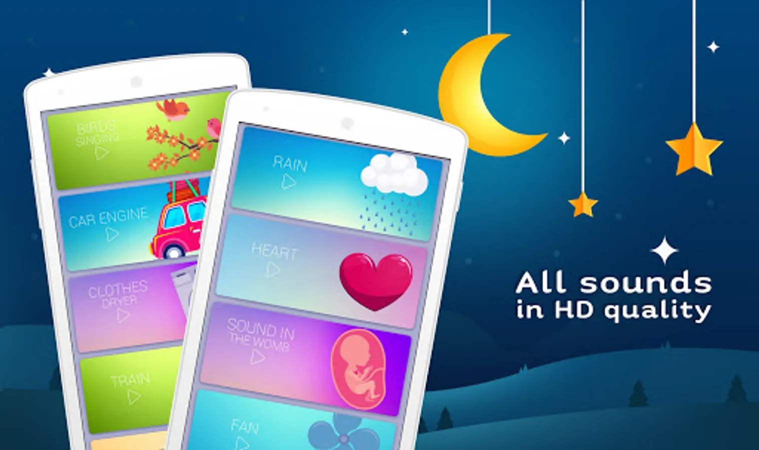 Rapid sleeping of babies is a problem of many parents. Baby Sleep Sounds application will help your baby fall asleep, generating monotonous, cyclic sounds such as white noise, vacuum cleaner sound, hair dryer sound, etc. Infants love these sounds because they resemble the sounds they hearing in the womb. Therefore, this type of lullaby is most commonly used by parents to sleeping babies and toddlers.