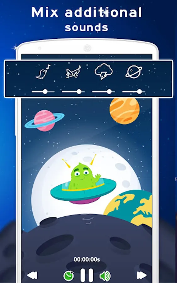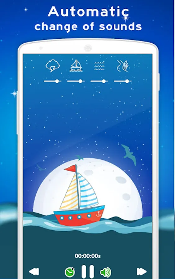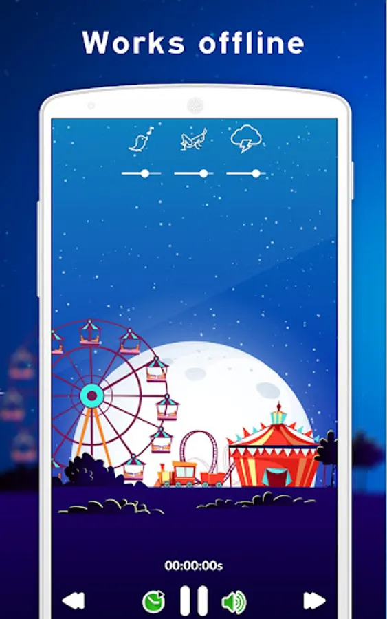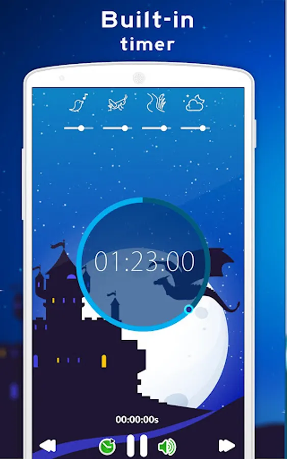 The application has the ability to set the timer, so the melody will turn off after a specified time and the option to create your own list of favorite songs. It can run in the background while doing other things on your phone.