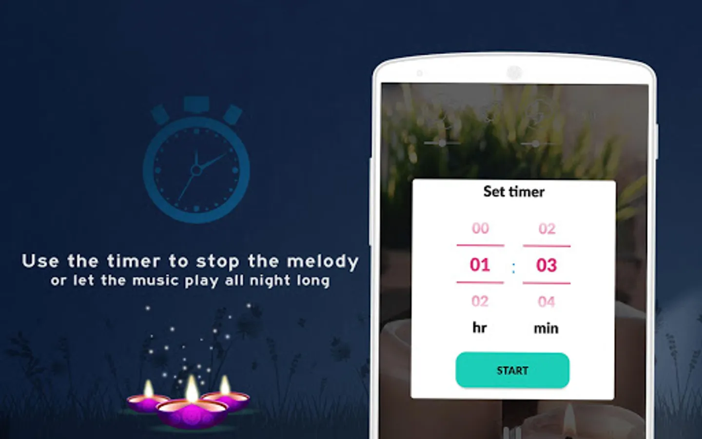 With this application on your phone you can watch relaxing flames of candles and listen to relaxing and calming melodies wherever you are and whenever you feel like it. No internet connection is required to run the application. Playing relaxing music during sleep is the best way to calm sleep and effectively rest.